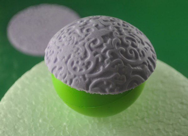 Ao retirá-la, veja que os detalhes da sua massa ficarão pintados.